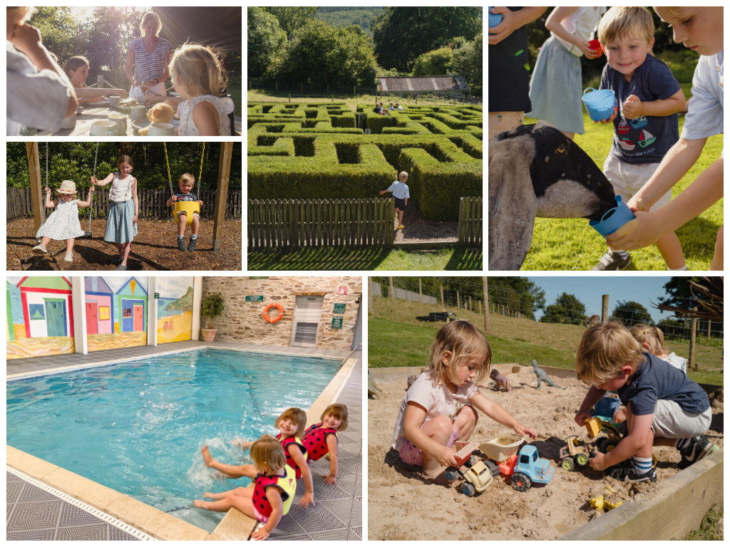 What stands out about Glynn Barton is the range and quality of child-friendly entertainment on site. There’s an indoor heated swimming pool, complete with floats and noodles, Hot Tub, a tennis court, a games room with toys, puzzles, pool and table football, giant chess, table tennis, an indoor soft play barn with a slide and ball pool, an outdoor play area with playhouse, giant fort and zipwire, an area for driving ‘ride-ons’ and lots of other open space.. the list goes on and on. There’s even a maze!