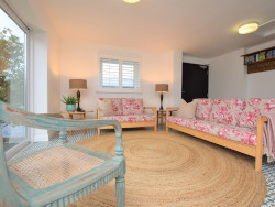 Outside there’s a private south-facing decked area with garden furniture, and at the rear is a shared garden with lawn and patio. A BBQ is provided for summer evening cooking.