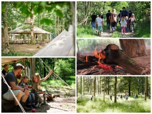 collage of images showing child and family friendly camping holidays at camp wilderness