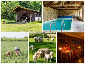 collage of images showing child and family friendly glamping holidays at moor farm
