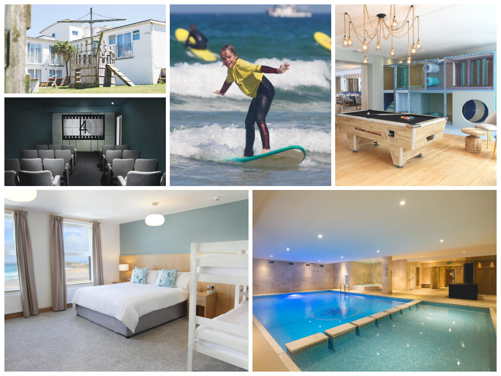 collage of images showing child and family friendly holidays at the esplanade hotel newquay